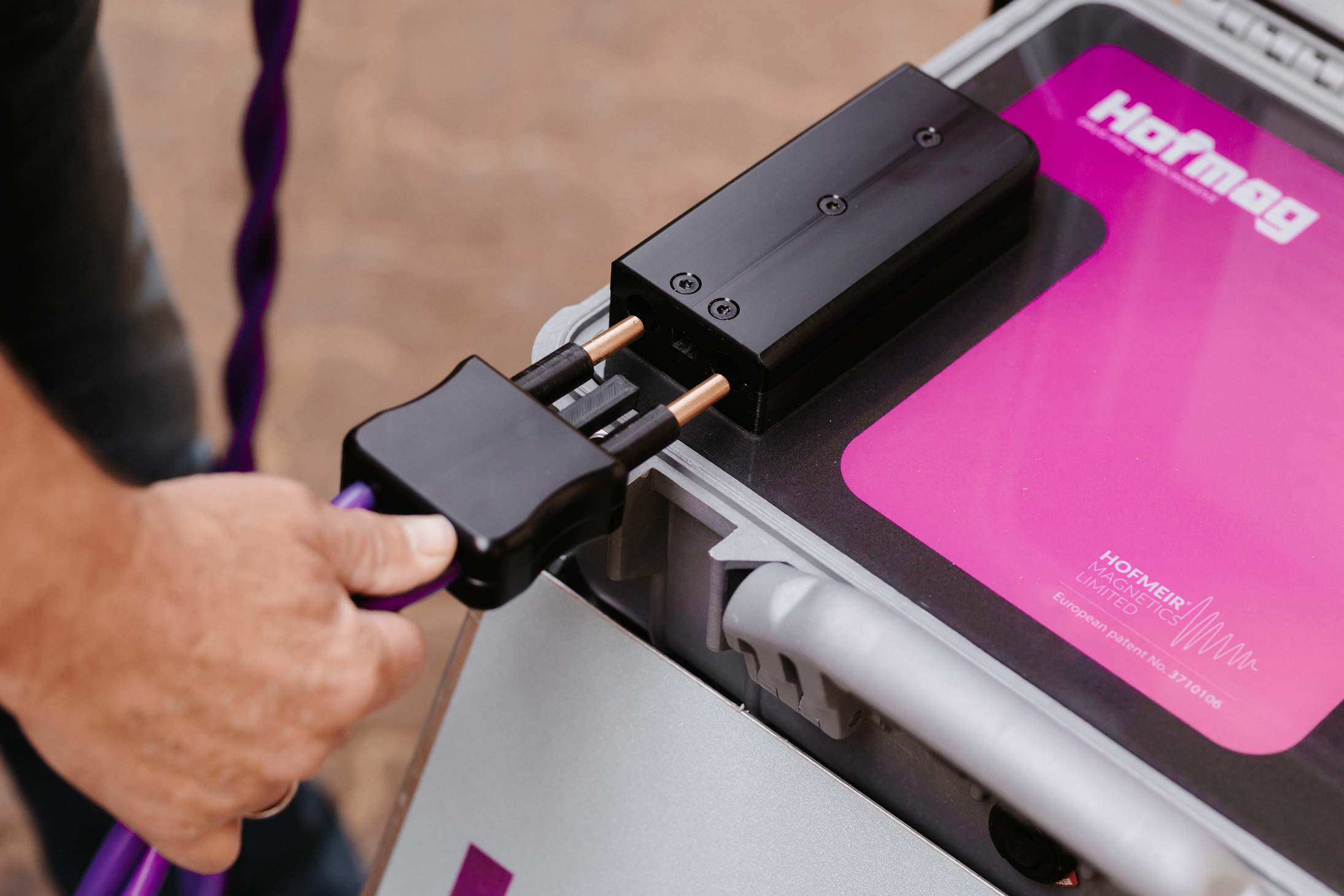 Das Hofmag ist ein pulsierendes Magnetfeld, welches über eine spezielle Behandlungsschlaufe am Körper angelegt wird.